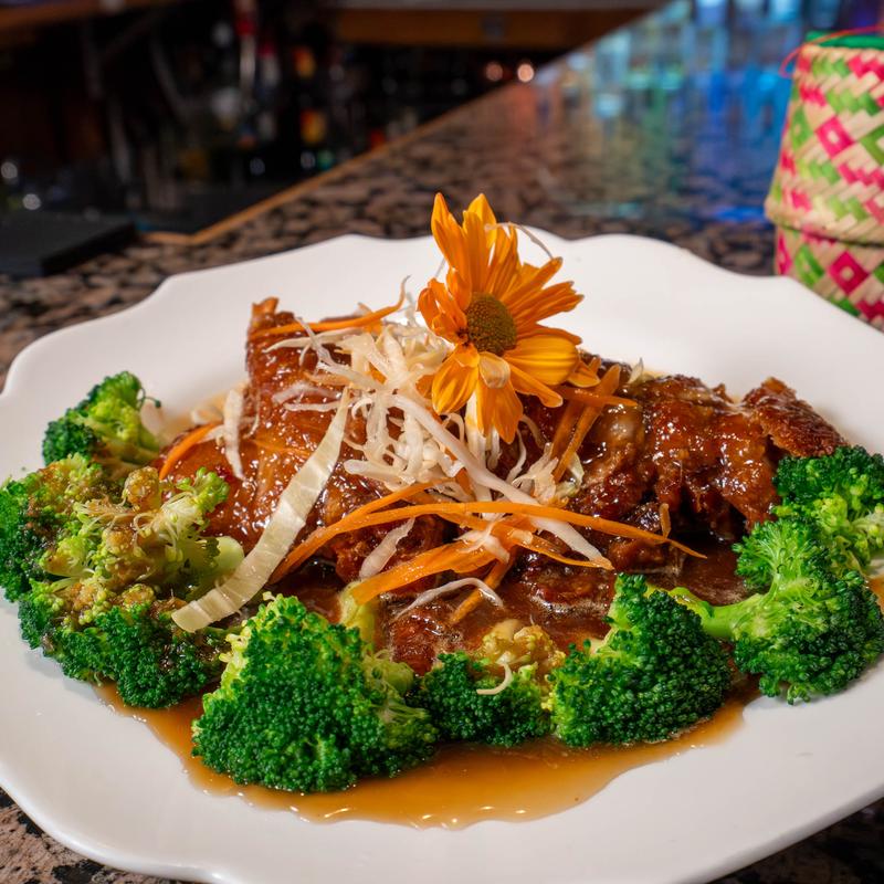 Food was AMAZING!! first time going to a Thai place and what an incredible experience.Service was spot on the atmosphere was wicked chill. The owner is a very nice guy who is extremely funny he got jokes.. THAI ICE TEA IS AMAZING!!! If you never tried it you have to.